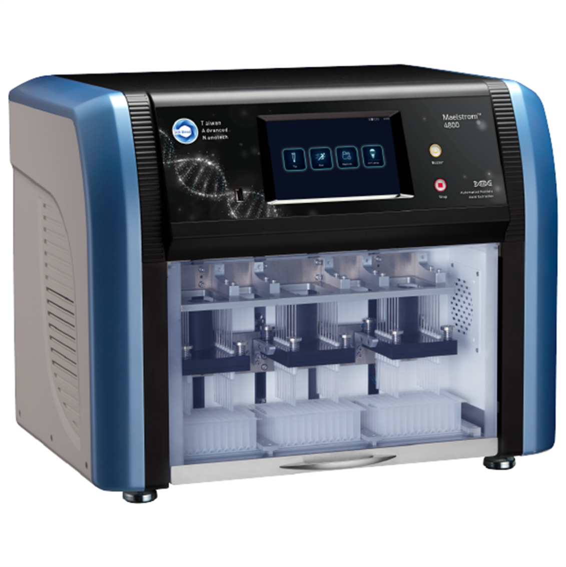 Maelstrom 4800 is a standalone and compact automated nucleic acid extractor designed for low to medium-throughput applications. It extracts 1-48 samples quickly and efficiently with the unique Spin-tip technology the Maelstrom 4800 is equipped with a UV lamp and HEPA filter for decontamination, and everything is controlled with an easy-to-use touchscreen.